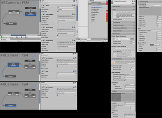 Unity was used with Particle Pack, Playmaker, and AR Kit to create my app. Particle Pack is the free particle plugin for Unity. It had a few prefabricated particle systems, and I was able to tweak one to create a foggy effect that I felt was a good metaphor for the hazy spots caused by Stargardt disease. I then used Playmaker to animate my scene’s post-processing effects, as those effects cannot be directly keyframed themselves. Motion blur and eye adaption were kept on for the whole scene, while color grading and bloom were keyed to turn on as the associated text explained the related symptoms.